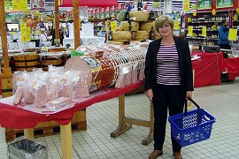 Jana v supermarketu - maso, sýry |